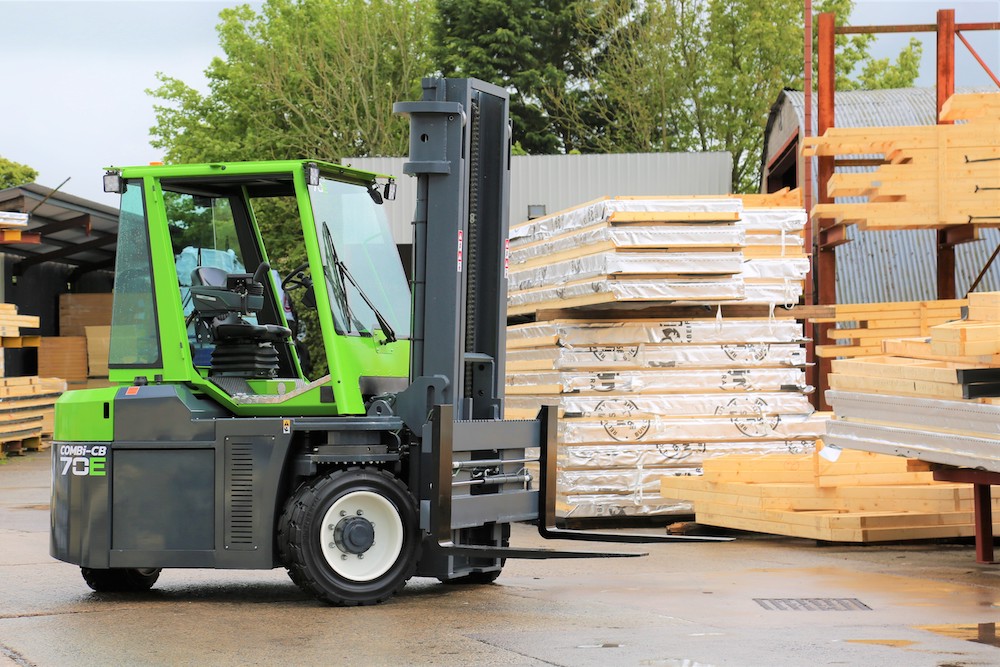 Der neue Combi-CB70E ist eine weitere Ergänzung der ständig wachsenden Palette von Combilift-Elektrostaplern, die sich durch hohe Leistung, lange Batterielebensdauer und unübertroffene Ergonomie auszeichnen. Dieses Modell hat die neue, leuchtende Combi-Grün-Farbe, die zum ersten Mal auf dem kürzlich eingeführten Combi-CUBE-Produkt zu sehen war. Er ist der kürzeste Gegengewichtsstapler mit 7 t Tragfähigkeit auf dem Markt und seine multidirektionale Fähigkeit ermöglicht den vielseitigen, platzsparenden Transport von langen und sperrigen Lasten.