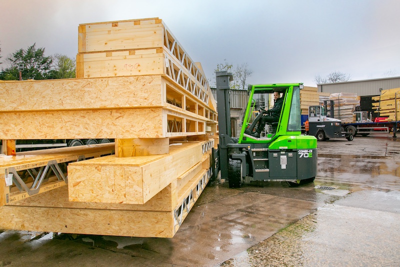 Der Combi-CB70E ist ein elektrisch betriebener Mehrwegestapler mit 7 Tonnen Tragfähigkeit, der für den Transport von Langgut und sperrigen Lasten auf engem Raum konzipiert wurde. Er ist mit dem patentierten Independent Traction Control System und großvolumigen elastischen Gummireifen ausgestattet, was den emissionsfreien Einsatz auch auf unebenem Gelände ermöglicht. Die großzügige, gasgefederte Kabine mit durchgehender Verglasung verbessert Sicht und Komfort. Der Auto Swivel Seat – ein automatisch um 15 Grad nach links oder rechts schwenkbarer Fahrersitz – unterstützt ergonomisches Arbeiten auch bei längeren Einsätzen.