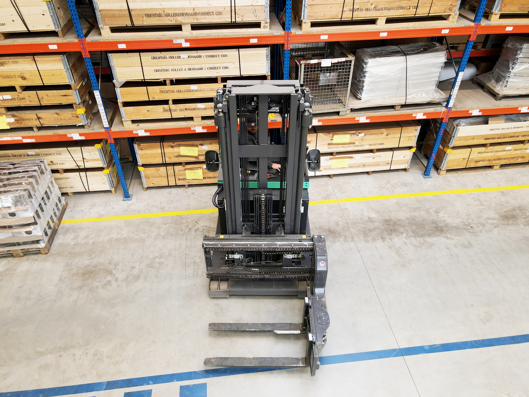 So spart das Unternehmen nicht nur viel Platz, der der Lagerfläche zugutekommt, sondern auch einen zweiten Stapler.